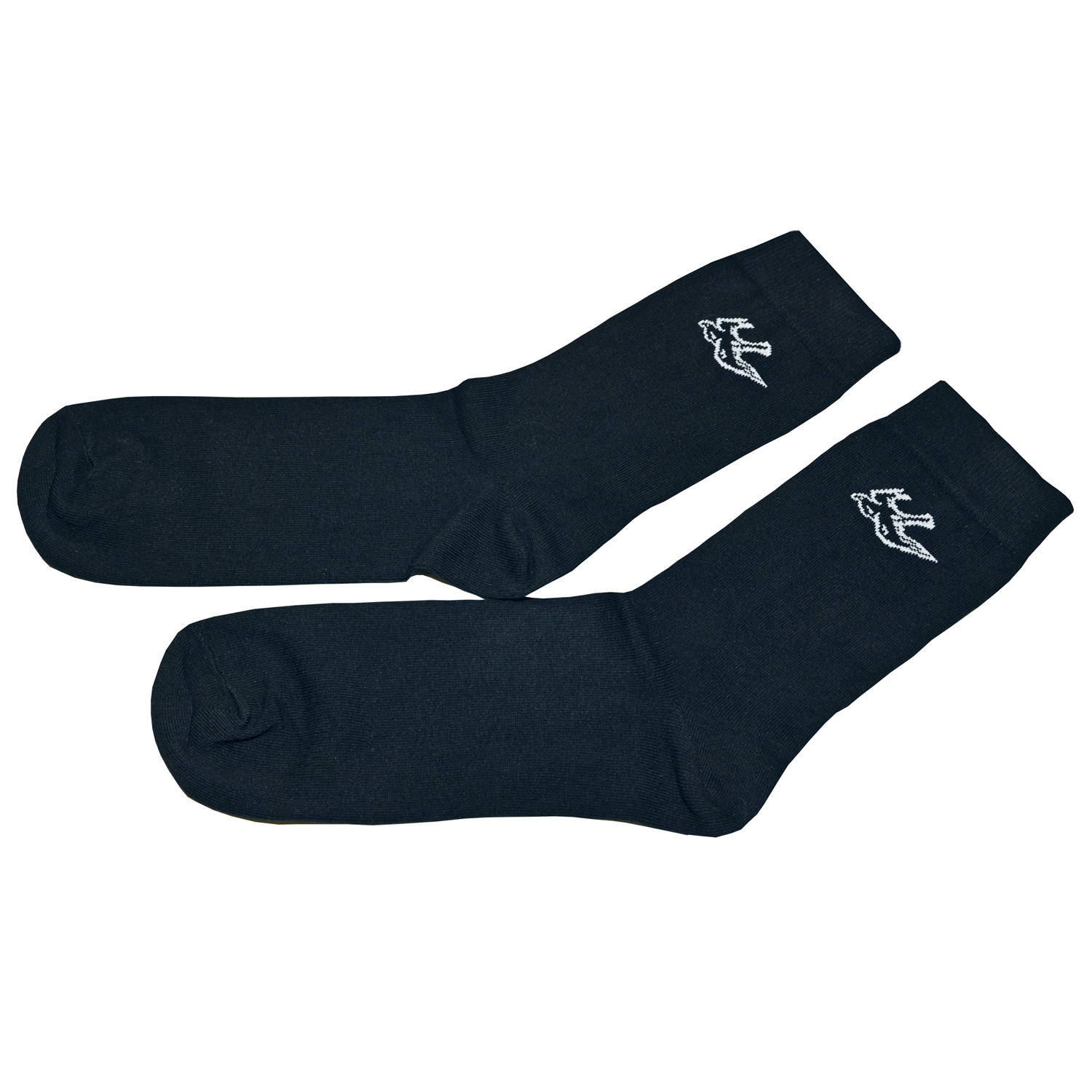 Jede Socke mit zwei fliegenden Tauben bestickt.