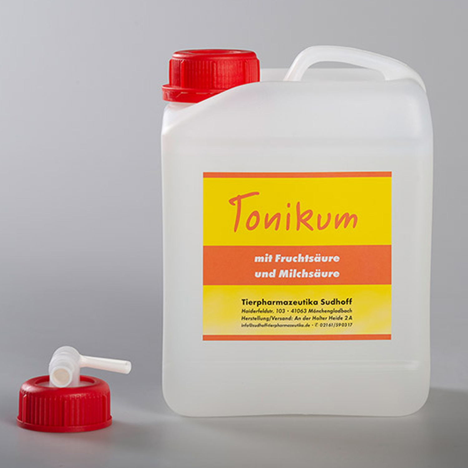Tonikum enthält die besonders wertvolle und gut verträgliche Milchsäure und Fruchtsäure und ist frei von den gefährlichen anorganischen Säuren, Phosphorsäure und Ameisensäure. Tonikum wurde vor dreißig Jahren als erstes Produkt dieser Art vom Tierarzt Burkard Sudhoff im Taubensport eingeführt
