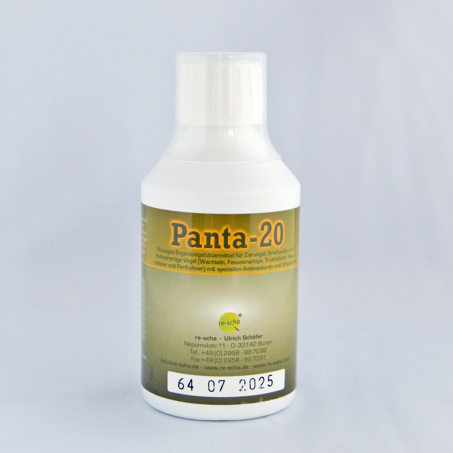 Zucht: Vor der Anpaarung ist Panta-20 über 10 Tage zu verabreichen. Während der Jungtieraufzucht (Nestlingszeit) sollte Panta-20 zweimal wöchentlich gegeben werden.